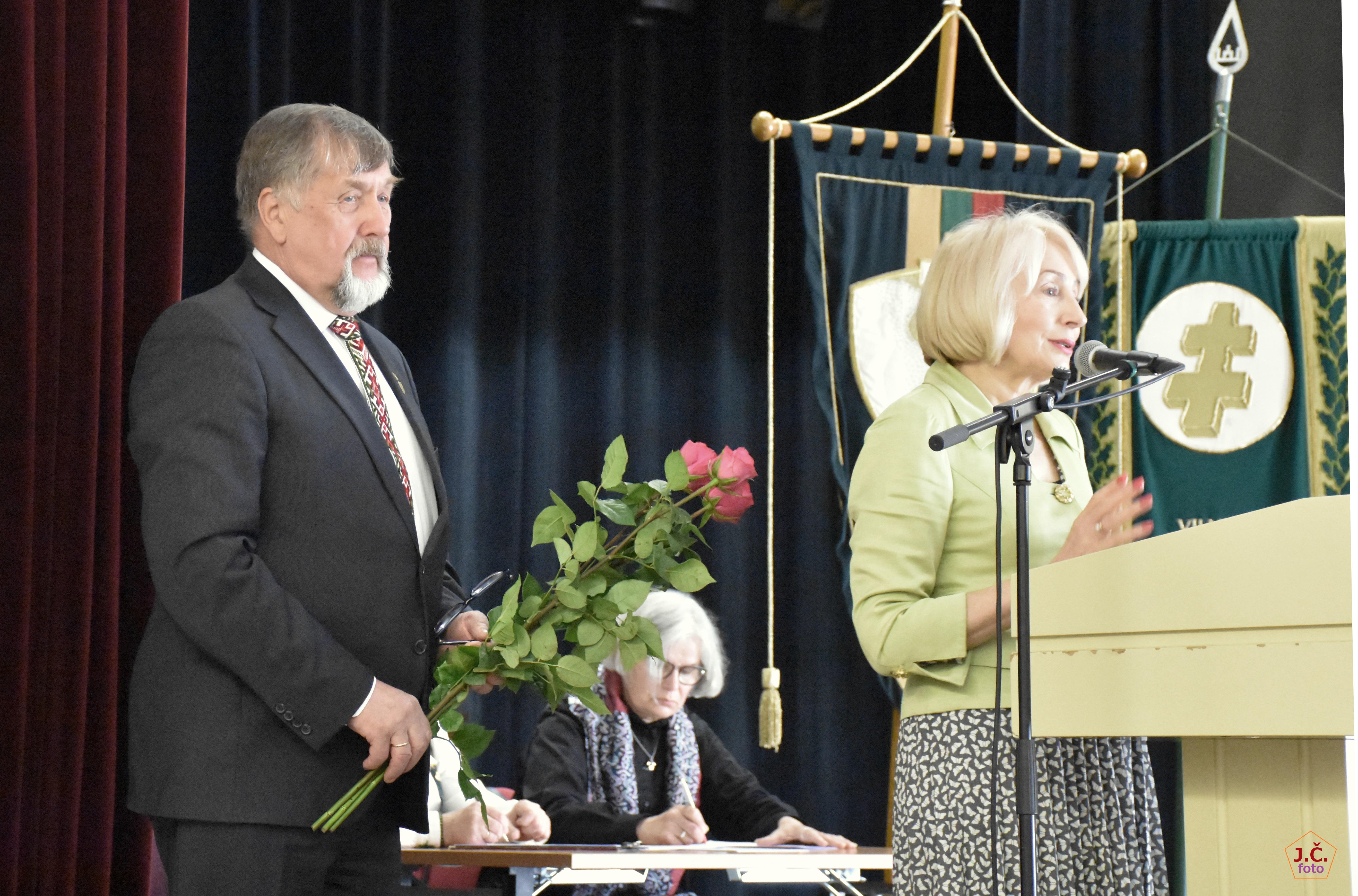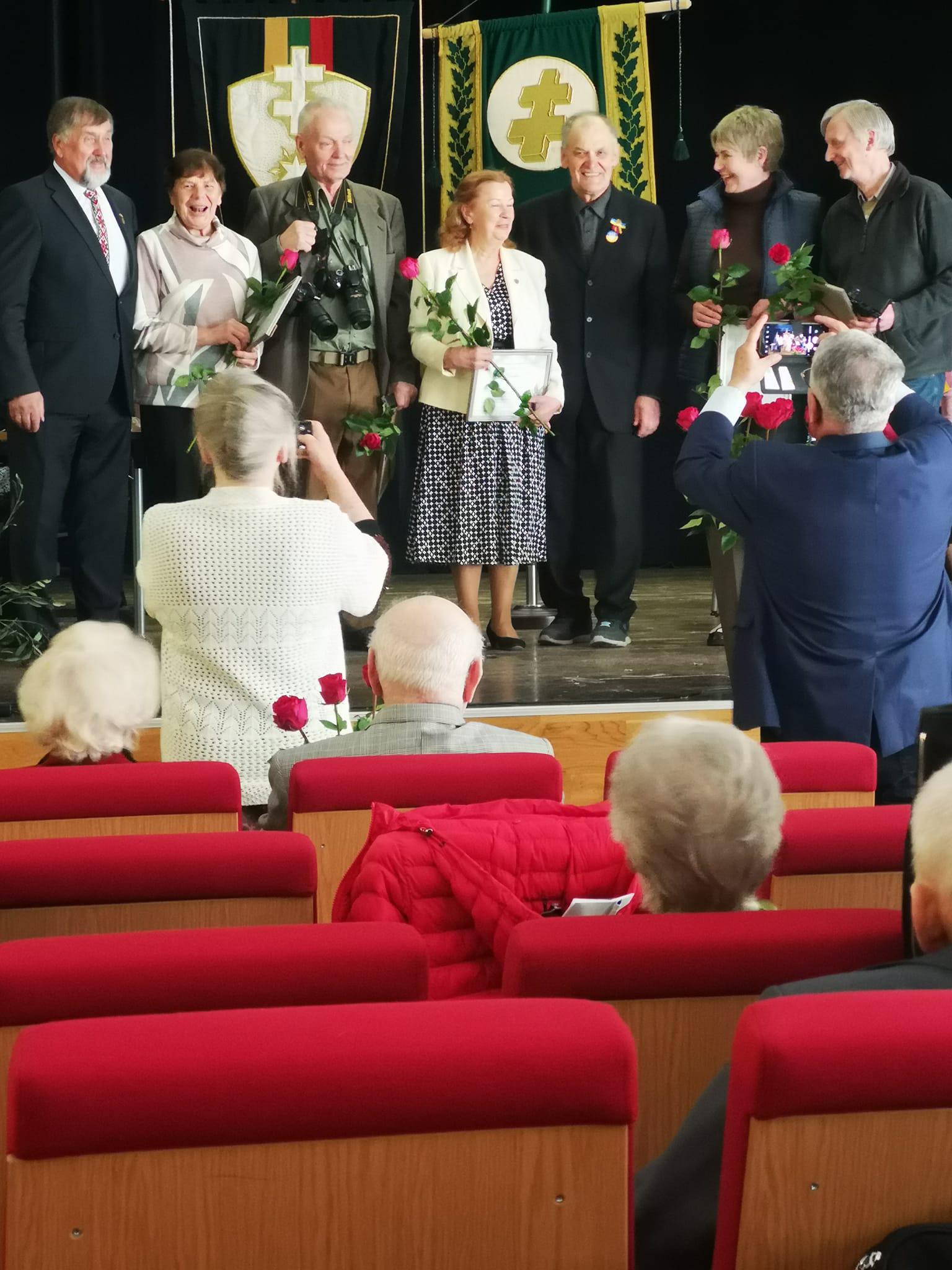 Toliau sekė LPKTB apdovanojimai. Už nuopelnus Lietuvai ir mūsų bendruomenei LPKTB medaliu „VILTIES ŽVAIGŽDĖ“ apdovanojamas Petras Plumpa, g. 1939 m. Rokiškio apskr. Apdovanojimų komisijos pirmininkė Rasutė Peslekienė pristatė pretendento biografiją ir veiklą.